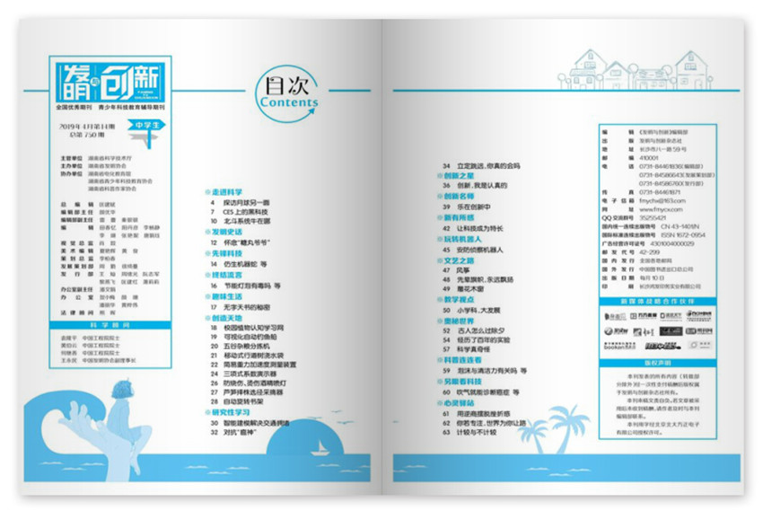 《發(fā)明與創(chuàng)新》主要介紹新潮的科技創(chuàng)意、科技產(chǎn)品和與小學(xué)生生活息息相關(guān)的科技事件或者話題,推薦展示在發(fā)明創(chuàng)新具有一定成績和影響的發(fā)明小達(dá)人,分享優(yōu)秀科技老師的輔導(dǎo)經(jīng)驗和科技創(chuàng)新特色小學(xué)的創(chuàng)新教育經(jīng)驗及成果,挖掘鮮為人知的奇聞趣事和科學(xué)新知。