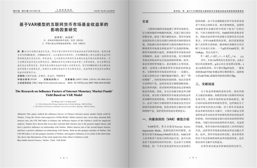 基于VAR模型的互聯(lián)網(wǎng)貨幣市場基金收益率的影響因素研究。本文以余額寶基金為代表,研究中國互聯(lián)網(wǎng)貨幣市場基金收益率的影響因素。使用向量自回歸(VAR)模型,對Shibor利率、七日國債逆回購利率、滬深300指數(shù)三者對余額寶收益率的影響程度進行實證分析。