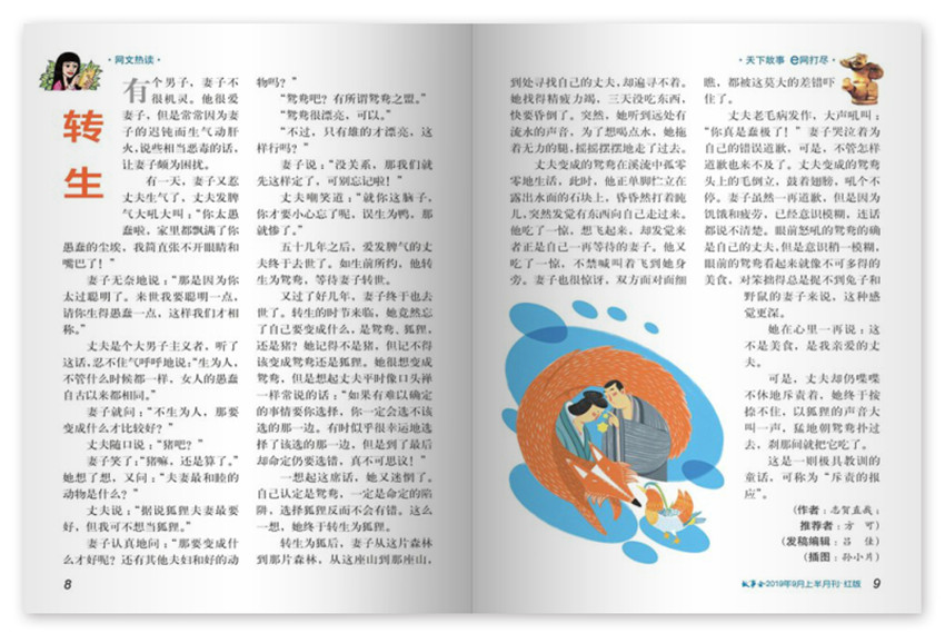 《故事會(huì)》(半月刊)創(chuàng)刊于1963年,多年來雜志內(nèi)容及形式方面與時(shí)俱進(jìn),并以其形式和內(nèi)容的豐富性及多樣性,贏得了不同階層讀者的喜愛與擁護(hù)。