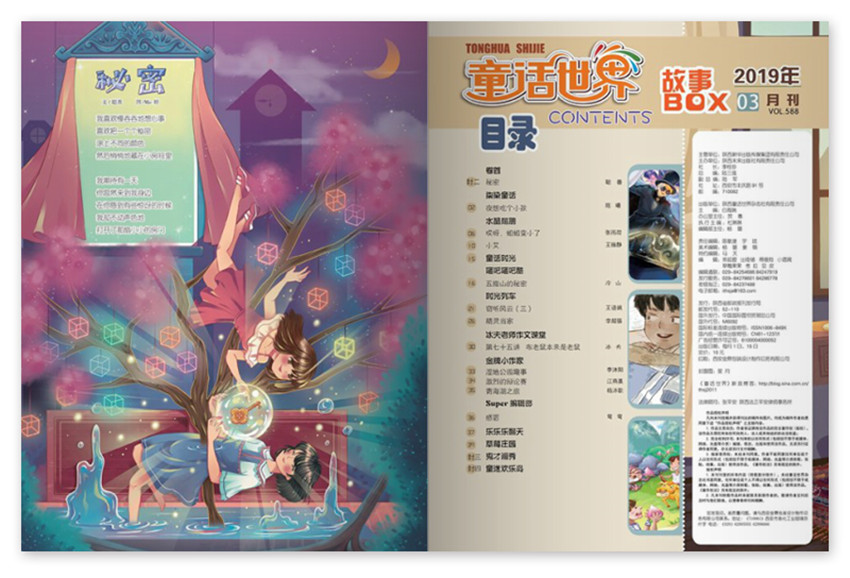 《童話(huà)世界·故事BOX》(月刊)創(chuàng)刊于1992年,多年來(lái)雜志內(nèi)容及形式方面與時(shí)俱進(jìn),并以其形式和內(nèi)容的豐富性及多樣性,贏得了不同階層讀者的喜愛(ài)與擁護(hù)。