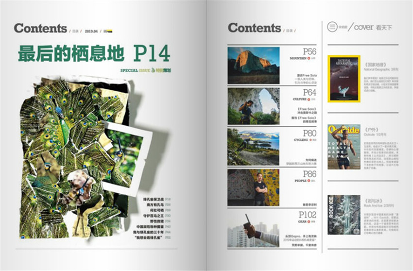 《運(yùn)動(dòng)休閑·戶外探險(xiǎn)》主要欄目:特別策劃、專門玩法、探險(xiǎn)之旅、自游自在、行者文摘、戶外人生、穿越手記、人車生活、先睹為快、裝備等。