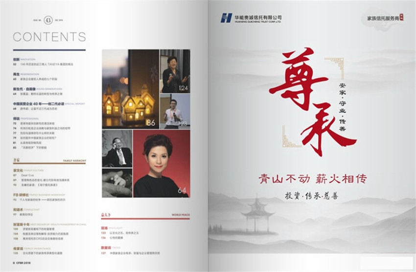 《家族企業(yè)》(月刊)創(chuàng)刊于2015年,多年來雜志內(nèi)容及形式方面與時(shí)俱進(jìn),并以其形式和內(nèi)容的豐富性及多樣性,贏得了不同階層讀者的喜愛與擁護(hù)。有“治業(yè)、修身、齊家、益天下”四大版塊,秉承只有中國的傳承才能傳承中國。