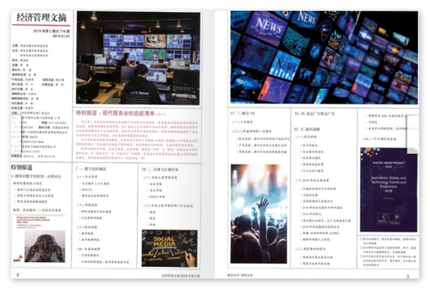 《經(jīng)濟管理文摘》主要欄目:管理行知、海外工商、互聯(lián)網(wǎng)、產(chǎn)業(yè)轉移、境外視點、世界論壇、他山之石、民族評論、專家視點、政策黃頁。