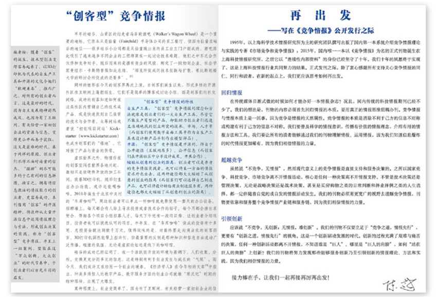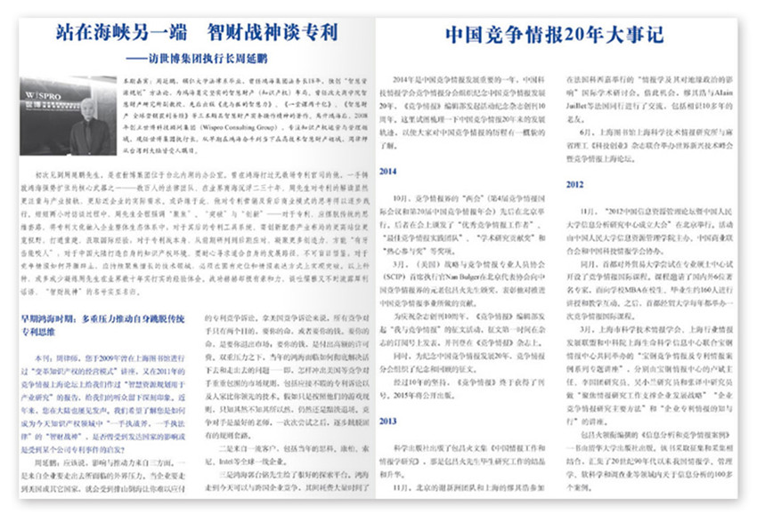 《競爭情報(bào)》(雙月刊)創(chuàng)刊于2004年,多年來雜志內(nèi)容及形式方面與時俱進(jìn),并以其形式和內(nèi)容的豐富性及多樣性,贏得了不同階層讀者的喜愛與擁護(hù)。旨在為關(guān)注研發(fā)創(chuàng)新、戰(zhàn)略規(guī)劃、市場競爭的人士提供新的、開拓視野、指導(dǎo)實(shí)踐的情報(bào)資訊、案例、方法和工具等內(nèi)容。