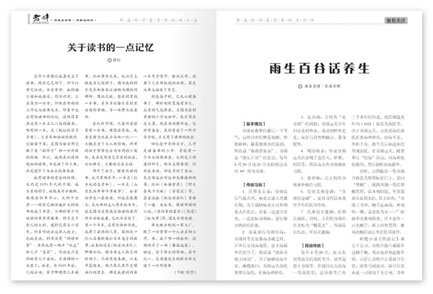 老年群體中的知識(shí)分子為對(duì)象,以憂老年人之憂,樂(lè)老年人之樂(lè),議老人之事,答老人之問(wèn),解老人之惑,增老人之智,幫老人之忙等為內(nèi)容,思老年人所思,想老年人所想為特點(diǎn),全心全意為老年讀者服務(wù)為宗旨以精心選載國(guó)內(nèi)外與老年人息息相關(guān)相關(guān)的各類文章為方法,以“老年人離不開(kāi)的知心伴侶”為追求,傾力打造的中國(guó)老年人品牌雜志。