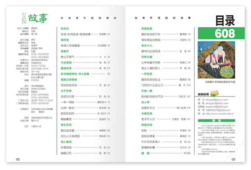 《女報?故事》雜志由國際頂級漫畫大師莫迪洛鼎力支持,深圳女報雜志社隆重出版,通俗而不低俗,巧妙演繹故事,妙趣橫生;幽默而不沉默,大膽正視現實,直言不諱,融紀實性和故事性于一體,時尚新銳、深沉穩(wěn)重,以不同于傳統(tǒng)故事的新穎視角,讓讀者耳目一新。