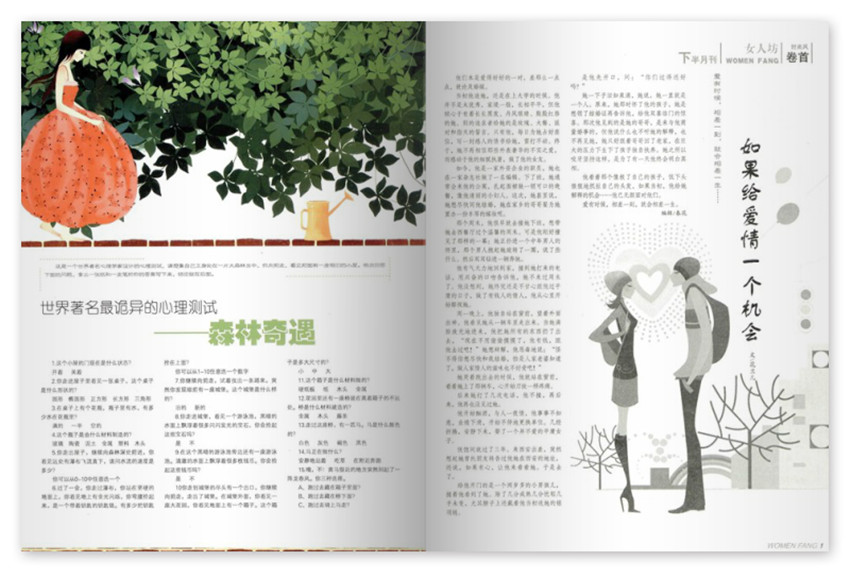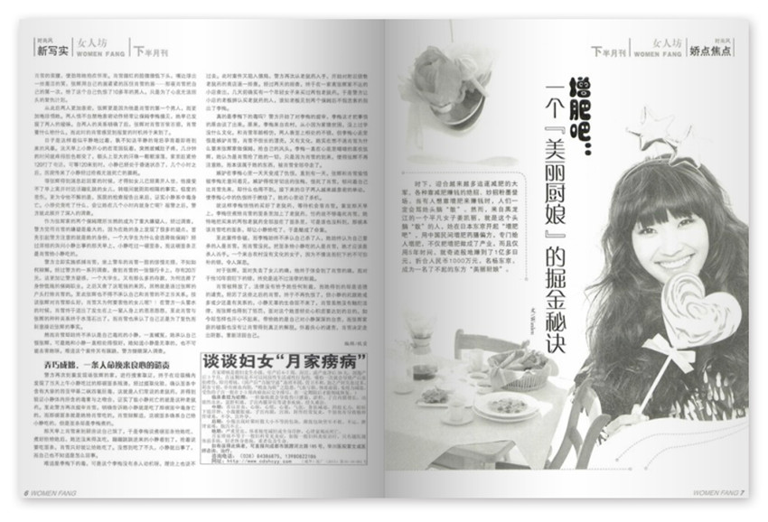 《女人坊》雜志多年來貴在不斷適應市場,并多次調整版塊、欄目、風格、版式、印刷,一步一個腳印,一年一個臺階,從只在國內發(fā)行到走向國際書刊市場。