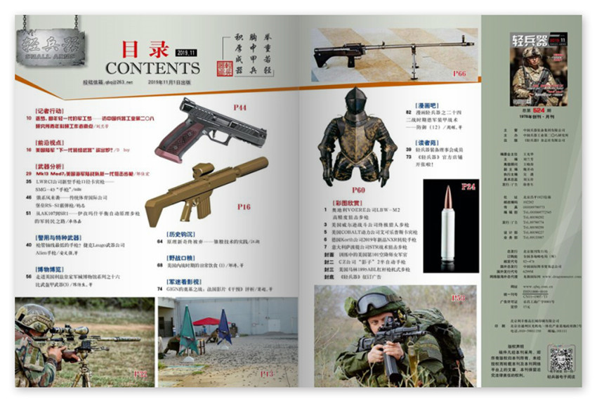 《輕兵器》(月刊)創(chuàng)刊于1978年,多年來(lái)雜志內(nèi)容及形式方面與時(shí)俱進(jìn),并以其形式和內(nèi)容的豐富性及多樣性,贏得了不同階層讀者的喜愛(ài)與擁護(hù)。從事輕武器研究、論證和生產(chǎn)制造的專家、學(xué)者、科技人員是雜志的主要撰稿人,其文章內(nèi)涵豐富、思想深邃、知識(shí)貫通,使期刊具有極高的專業(yè)權(quán)威性,在廣大輕武器愛(ài)好者中深有影響。