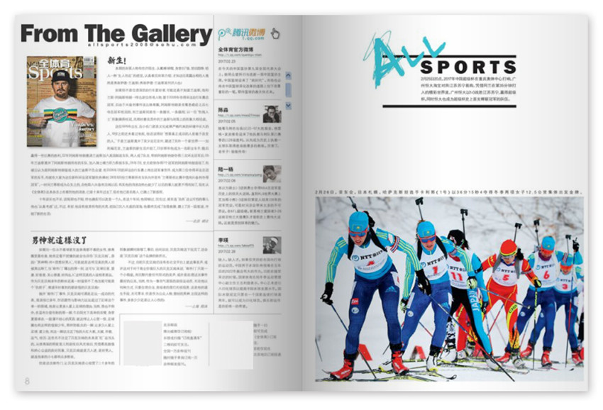 《全體育》雜志內(nèi)容豐富:封面故事、全視角、競賽、體育人間等欄目,均有鮮明特色,力求為讀者提供獨(dú)到的見解、從容的態(tài)度、深入的調(diào)查和鮮活的人生體驗(yàn)。