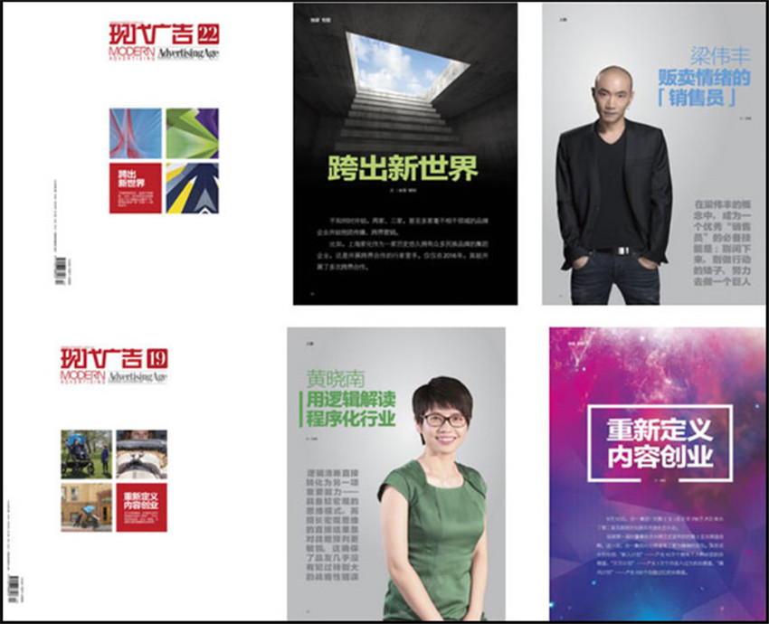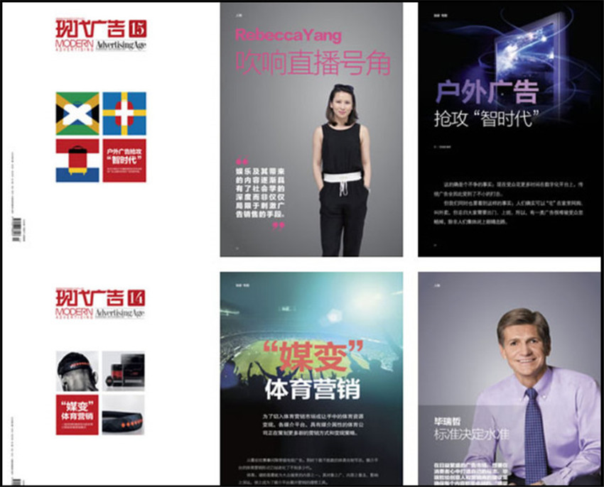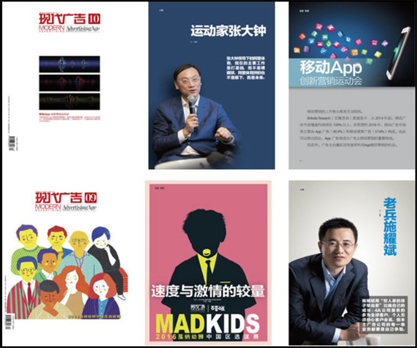 《現(xiàn)代廣告》主要欄目:專(zhuān)題報(bào)道、特別關(guān)注、創(chuàng)意長(zhǎng)廊、廣告人物、市場(chǎng)觀察、廣告經(jīng)營(yíng)、媒介報(bào)道、論壇。