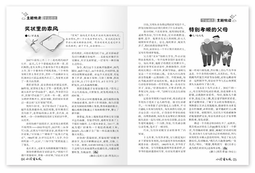《小讀者之友》雜志緊緊把握時代脈搏,所選取知識都是與生活息息相關,很有時代感的知識,講解非常詳細,可讀性強,深入淺出,是一本開闊視野、開拓思維的雜志。以其形式和內容的豐富性及多樣性,贏得了不同階層讀者的喜愛與擁護。
