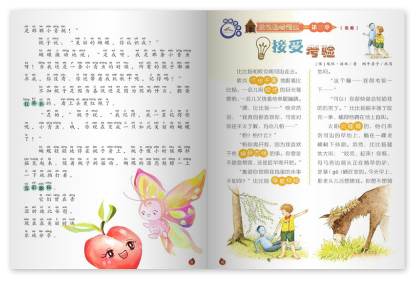 接受考驗,比比揚和哎克朝河邊走去。艾克寸步不離地跟著比比揚,一會兒用狡的目光觀察他,一會兒又繞著他單腿蹦跳?!昂?,比比揚——”他突然說,“我真的很喜歡你,可我對你還不太了解,有點兒怕……”“怕?怕什么?”“怕你離開我,因為我喜歡干些稀奇古怪的事。你要是不愿意幫我,還是趁早離開吧。”“難道你覺得我搗蛋的市事不如你?”比比揚得意揚揚地問。