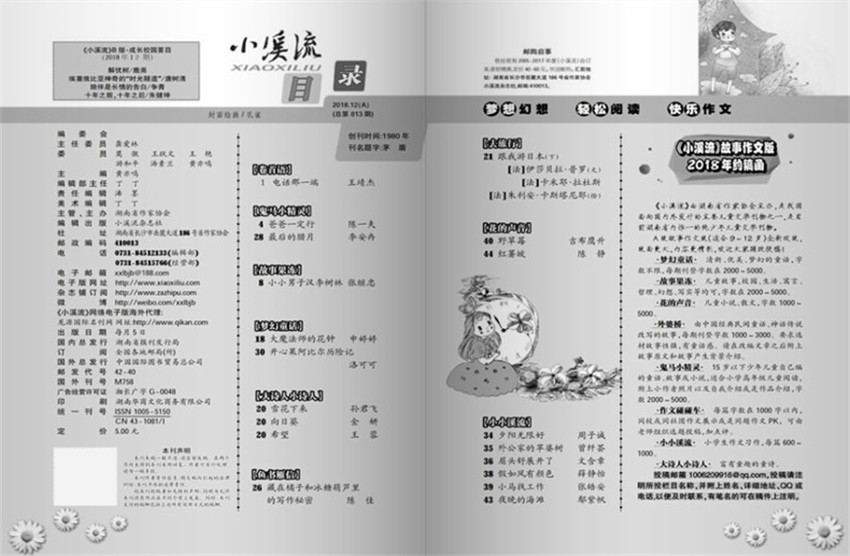 《小溪流》(月刊)創(chuàng)刊于1980年,多年來雜志內(nèi)容及形式方面與時(shí)俱進(jìn),并以其形式和內(nèi)容的豐富性及多樣性,贏得了不同階層讀者的喜愛與擁護(hù)。主要面向小學(xué)生,刊發(fā)的作品有童話、童詩、寓言及學(xué)生作文;