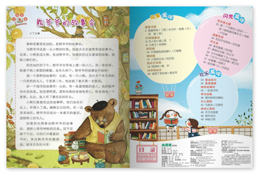 《小星星》(月刊)創(chuàng)刊于1980年,多年來雜志內(nèi)容及形式方面與時(shí)俱進(jìn),并以其形式和內(nèi)容的豐富性及多樣性,贏得了不同階層讀者的喜愛與擁護(hù)。充分遵照小學(xué)低年級段孩子的身心特點(diǎn)及閱讀趣味,科學(xué)編排內(nèi)容,匯集國內(nèi)一線兒童文學(xué)作家與畫者,兼具文學(xué)美與圖畫美,版式美觀,全文注音,星星書房,精選文學(xué)性、故事性兼?zhèn)涞睦L本故事,圖文并茂,讓小讀者在愉悅的閱讀體驗(yàn)中感受美,領(lǐng)悟美,走進(jìn)文學(xué)的殿堂。