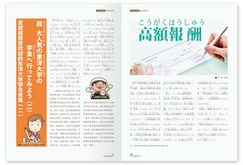 《一番日本語》(月刊)創(chuàng)刊于2009年,多年來雜志內(nèi)容及形式方面與時俱進(jìn),并以其形式和內(nèi)容的豐富性及多樣性,贏得了不同階層讀者的喜愛與擁護。知識與時代結(jié)合,資訊與網(wǎng)絡(luò)同步,熱點話題,流行資訊,傳統(tǒng)文化,聽說讀寫,綜藝快報,一本適合日語學(xué)習(xí)者閱讀的日語學(xué)習(xí)類綜合期刑,你值得擁有!