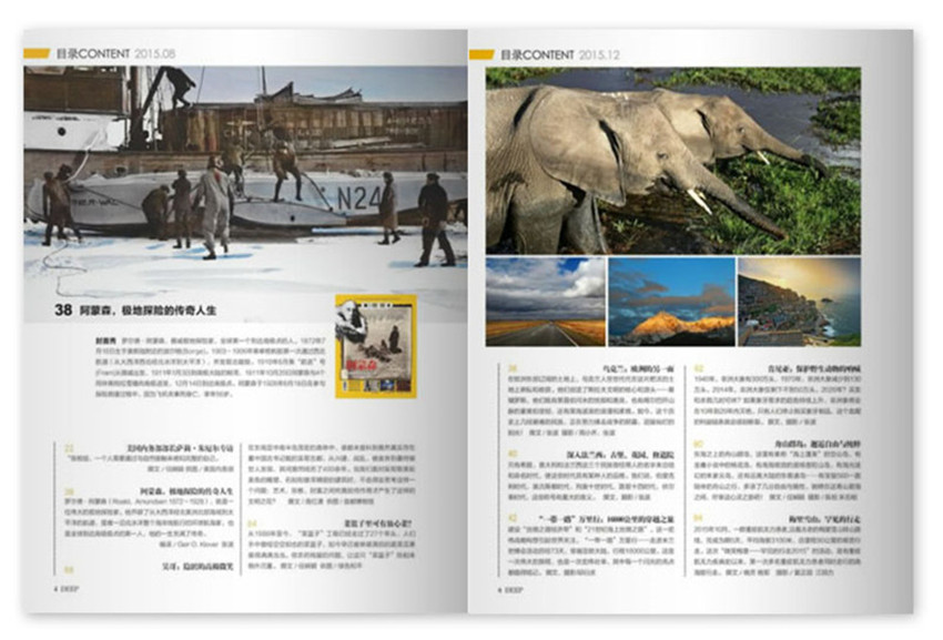 一本采用105G銅版紙印制的中國雜志,以支持精品大刊品質(zhì)需要;品味:保持向讀者提供具有高品質(zhì),高欣賞品味的圖片,以具有鮮明觀點的態(tài)度與向讀者揭示人類各領(lǐng)域近期探索成果與發(fā)現(xiàn)。以支持精品大刊辦刊目標;知識性:向讀者提供具有較高文化品味的人類新探索成果,內(nèi)容具知識性,涉及范圍廣泛,涵蓋地理,科技,文化,民族,歷史,探險等諸多領(lǐng)域。