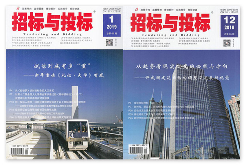 全國以“招標(biāo)投標(biāo)”命名,內(nèi)容涵蓋招投標(biāo)全領(lǐng)域(工程項目、貨物、服務(wù)),涉及招投標(biāo)參與各方(招投標(biāo)監(jiān)管部門、招標(biāo)人、投標(biāo)人、機構(gòu)、評標(biāo)專家、交易平臺)的專業(yè)雜志。