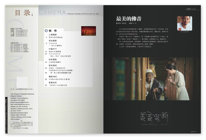 《照相機(jī)》(月刊)創(chuàng)刊于1979年,多年來(lái)雜志內(nèi)容及形式方面與時(shí)俱進(jìn),并以其形式和內(nèi)容的豐富性及多樣性,贏得了不同階層讀者的喜愛(ài)與擁護(hù)。