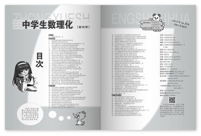 《中學(xué)生數(shù)理化》主要欄目:卷首語、創(chuàng)新教育、教學(xué)論壇、教與學(xué)、科學(xué)思想方法。