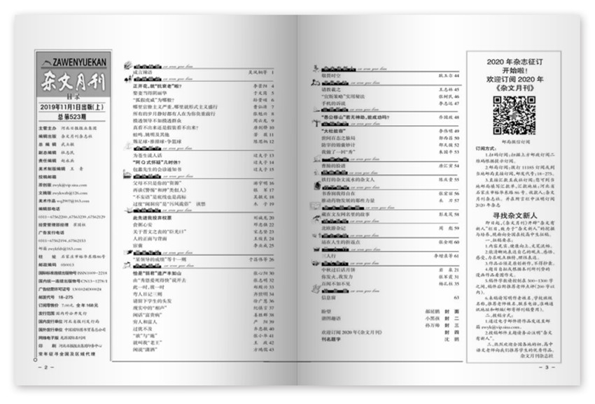 《雜文月刊》(半月刊)創(chuàng)刊于1985年,多年來雜志內容及形式方面與時俱進,并以其形式和內容的豐富性及多樣性,贏得了不同階層讀者的喜愛與擁護。